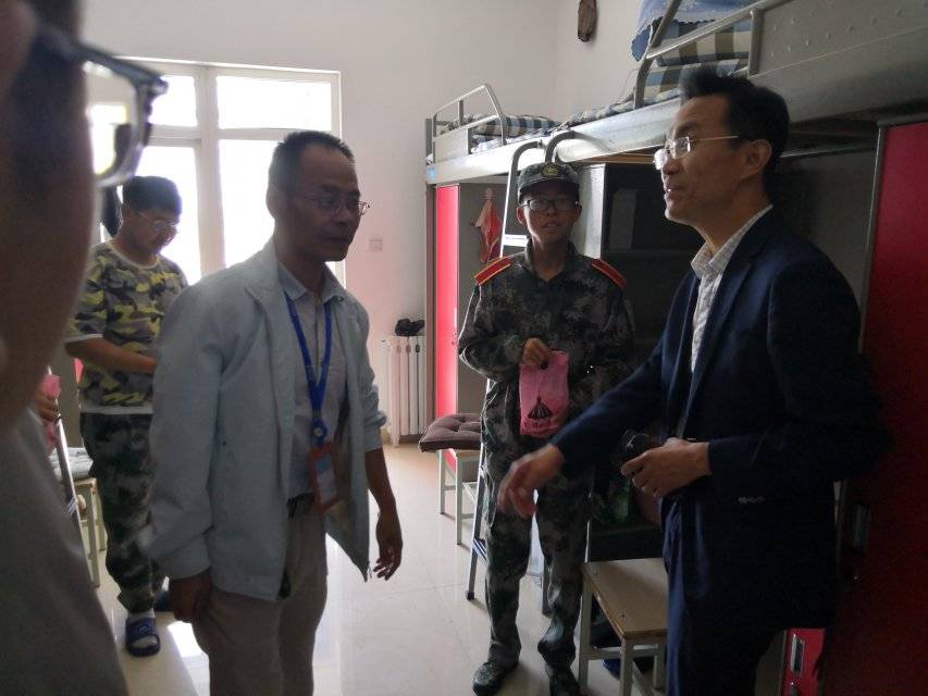 杨登兴书记一一叮嘱同学们,军训时体力消耗大,要吃好早餐,注意安全,并且亲切的询同学们,训练中,生活中有没有困难等问题。